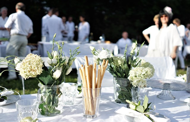Wie immer steht der Abend ganz im Zeichen der Farbe Weiß. Jeder bringt mit, was für ein festliches Picknick gebraucht wird: Speisen, Getränke, Geschirr, Gläser und eine weiße Tischdecke.